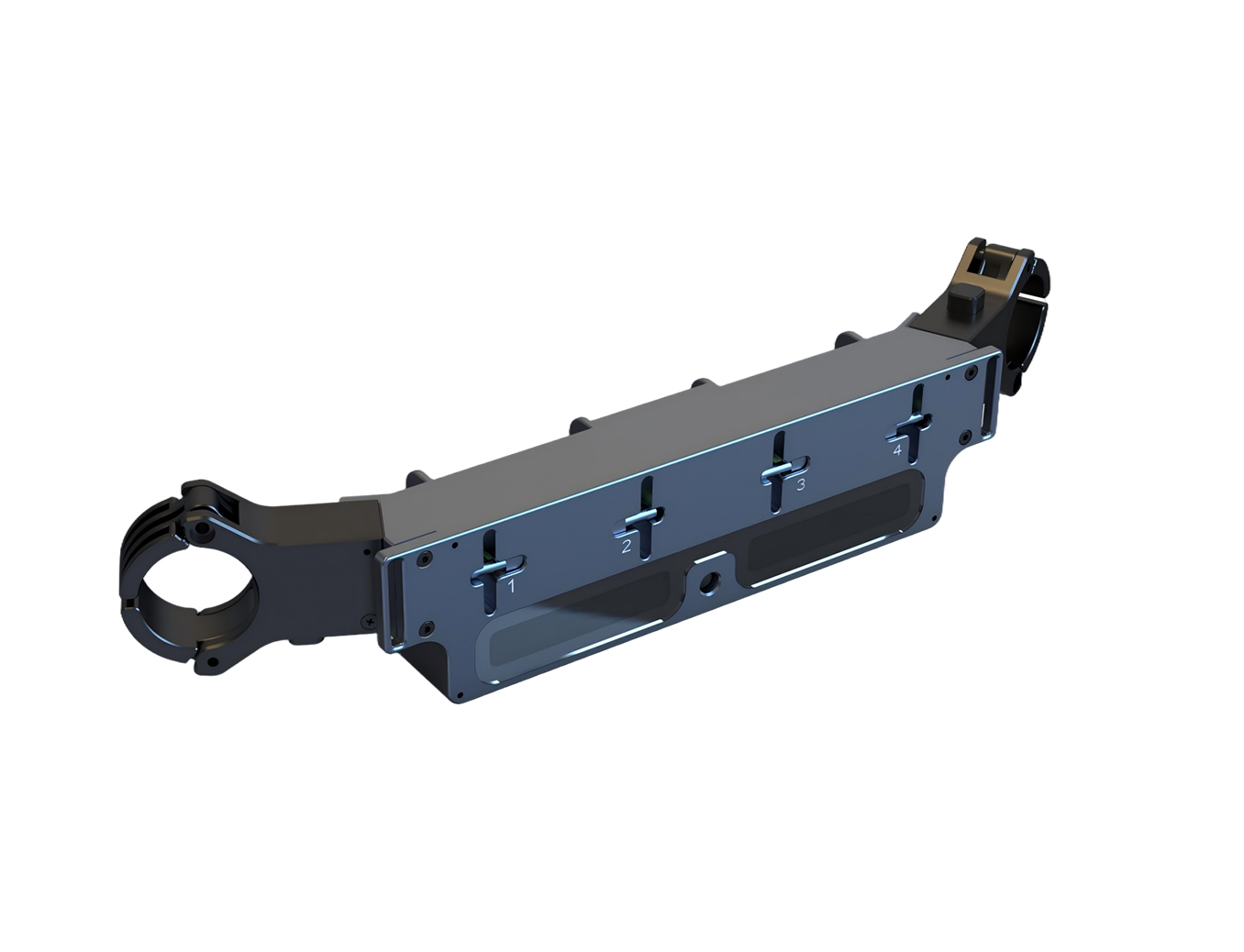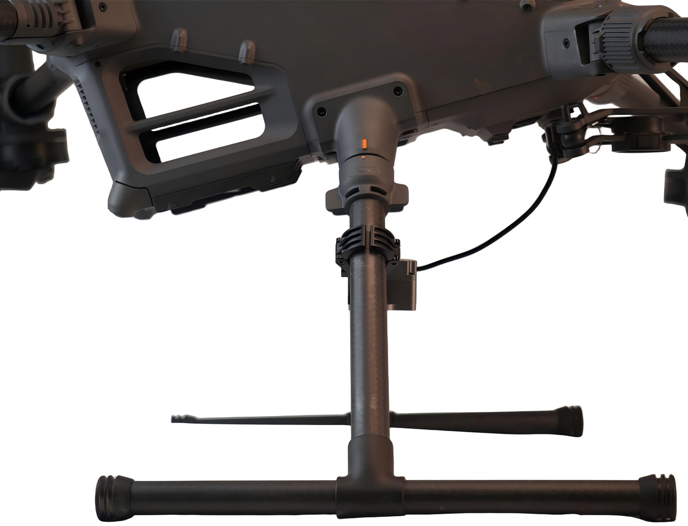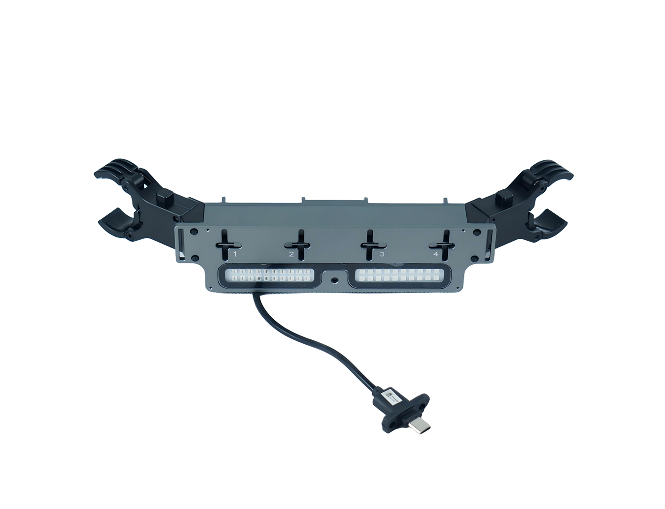 The BK400 is a two-in-one device equipped with red and blue warning lights and a parabolic reflector. It operates reliably in adverse weather conditions and is compatible with the Matrice 350/400 series through the DJI PSDK interface. Installation requires no screwdrivers, thanks to its quick-release clip-on mounting system, eliminating the need for any drone modifications. The four-stage parabolic reflector ensures reliable installation without the risk of the gimbal’s anti-vibration ball popping.