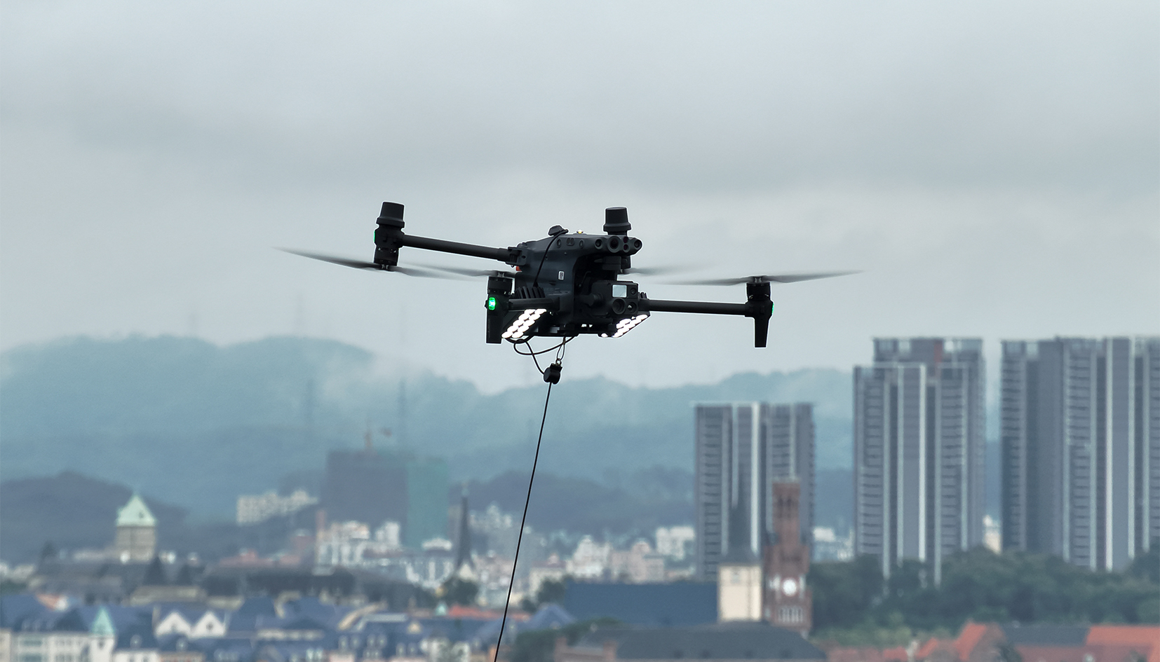 Paired with a 1kWh outdoor energy storage device, it provides approximately 3 hours of continuous lighting* *No wind, hovering at 10 meters, 450W lighting power. Lowering the altitude and brightness can extend the lighting duration.